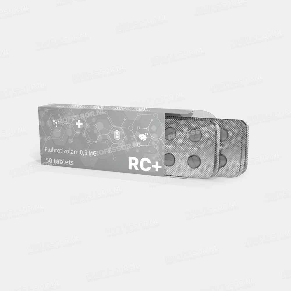 RC+ Flubrotizolam 0,5 MG Box bevat hoogzuivere Flubrotizolam, een verbinding uit de thienotriazolodiazepineklasse, ontwikkeld voor toxicologisch, analytisch en forensisch onderzoek.